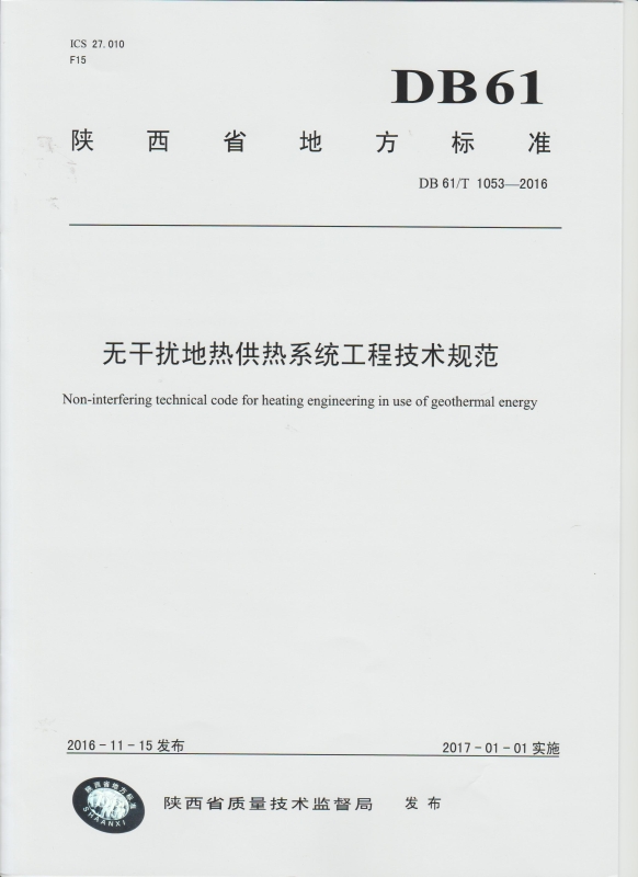 热烈祝贺我公司无干扰地热供热技术规范获陕西省地方标准发布实施
